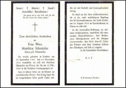 ∞ am 12.11.1912 mit Matthias Schnitzler aus Düren, 12.10.1930 †; seit 22 Jahren lebte sie im Kloster zu Arnoldsweiler-Düren. |