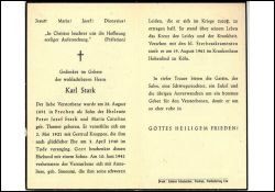 Eltern Peter Josef Stark und Maria Caroline geb. Thomer; 1. ∞ am 02.05.1921 mit Gertrud Knuppen, 03.04.1940 †; 1 Sohn; 2. ∞ am 10.06.1941 mit Anneliese geb. Simonini; |