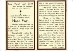 Eltern Aloys Vogt und Sibylla Printz; 4 Brüder; |