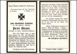 Gefallener 2. Weltkrieg; im Alter von 25 Jahren den Heldentod gestorben; Obergefr. In einem Infanterie-Regiment; ∞ am 08.08.1940; |