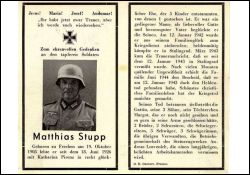 Gefallener 2. Weltkrieg; ∞ am 18.06.1926 mit Katharina Pirenz; 5 Kinder, davon 1 gestorben; wurde am 12.01.1942 zum Kriegsdienst einberufen; |