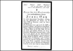 Eltern: Josef Gatz u. Regina geb. Rahmel; ∞ 18.10.1924 Anna Wolf |