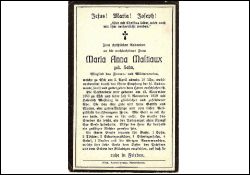 ∞ am 02.11.1879 mit Heinrich Mastiaux; Mitglied des Frauen- und Müttervereins; |