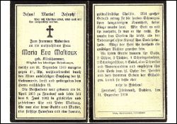 ∞ am 08.06.1882 mit Peter Mastiaux; Mitglied des lebendigen Rosenkranzes; |