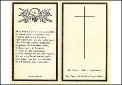 Gefallener 2. Weltkrieg; Unteroffizier in einem Art.-Rgt.; 28 Jahre; begraben in der Nähe von Staraja Russa; (Neumagen) |