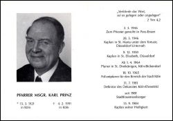 Pfarrer, Monsignore; Priesterweihe am 03.03.1946 in Porz-Ensen; Kaplan in Düsseldorf; Pfarrer in Köln-Bickendorf; Polizeipfarrer für den Bereich Stadt Köln; Definitor des Dekanates Köln-Ehrenfeld, Stadtfrauenselsorger; |
