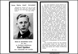 Gefallener 2. Weltkrieg; Eltern: Leo Spicher u. Maria Elisabeth geb. Schmitz; arbeitete nach Schulentlassung im großväterlichen Brennbetrieb; Ende Mai 1944 Vermißtenmeldung; Gewißheit erst nach 6 J. |