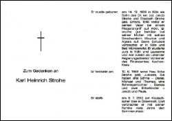 Eltern Dr. rer. pol. Jahob Strohe D und Elisabeth geb. Erhard; ∞ am 10.06.1968 mit Erika geb. Junkers, 3 Söhne; war zuletzt Leitender Regierungsdirektor Vorsteher des Finanzamtes Aachen-Kreis; |