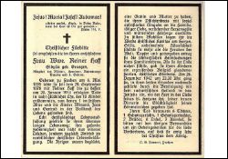 ∞ am 28.09.1878 mit Reiner Hoff - 20.01.1914 †: 10 Kinder; Mitglied des Mütter-, Kevelaer-, Rosenkranz-Vereins und 3. Orden; |