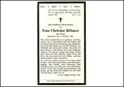 Eltern Josef Esser und Cäcilia Buchholz; ∞ 1920 mit Peter Böhmer aus Hehlrath, 5 Kinder |