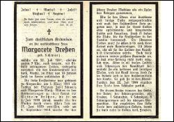 nach langem mit Geduld ertragenen Leiden verstorben; Eltern Josef Schwarz und Margarete Meiß; ∞ am 02.07.1939 mit Wilhelm Dreßen; |