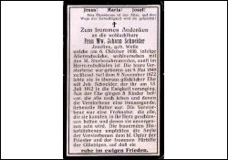 ∞ 9.11.1872 Johann Schneider, verstorben 13.7.1912; 8 Kinder |