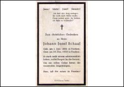 selbständiger Dachdecker, ∞ 2. Ehe 2.8.1912 in Frechen Christina Krebs; 1. Ehefrau verstarb im Wochenbett nach der Geburt der 1. Tochter Agnes, 3 weitere Töchter (Maria, Helene, Barbara) u. 1 Sohn Engelbert (vermisst in Stalingrad im 2.Weltkrieg, Winter 1942/43) |