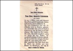 ∞ 1880 Hubert Lindemann, verstarb 1885; sie lebte, sich selbst vergessend, ganz der Sorge für ihre Kinder, unermüdlich in Fleiß und Opferbereitschaft. Durch den Tod ihrer jüngsten Tochter, erfuhr sie 1941 noch großes Leid. |