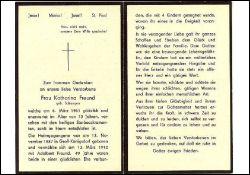∞ am 13.03.1912 mit Adalbert Freund. 49 Ehejahre, 4 Kinder. |