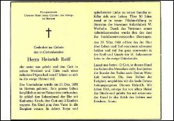 ∞ mit Katharina Kirsch, 2 Kinder. 1 Kind vor dem Vater gestorben. Über 50 Jahre in Diensten der Horremer Brikettfabrik W. Werhahn. |