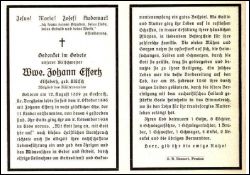 ∞ am 02.10.1896 mit Johann Effertz † 02.11.1938, 11 Kinder, davon 4 gestorben; Mitglied des Müttervereins; |
