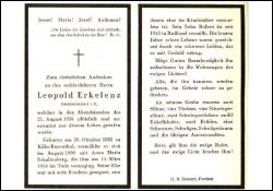 ∞ im August 1909 mit Anna Maria Schallenberg † 14.03.1954, 8 Kinder, davon 1 im Kindesalter verstorben; Sohn Robert seit 1942 in Rußland vermißt; Maschinenmeister i.R. |