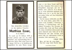 Gefallener 2. Weltkrieg, Vater am 1.1.1919 gestorben; Im Dezember 1943 zum Kriegsdienst eingezogen, |