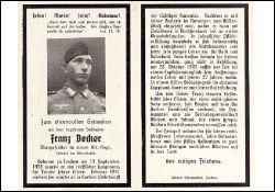 Gefallener 2. Weltkrieg; Obergefreiter in einem Art.-Regt.; wurde im Februar 1941 zur Wehrmacht einberufen, Einsatz in Norwegen, am Polarkreis und in Nordfinnland, |