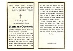 durch feinlichen Luftangriff in Siegburg gefallen. ∞ am 06.02.1921 mit Agnes Raaf, 8 Kinder, davon 3 im jugendlichen Alter gestorben. |
