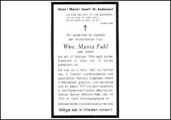 ∞ 1917 mit Rektor Wilhelm Fahl † 1931; Tochter des in Frechen wohlbekannten und geschätzten Rektors Engelbert Abels; |