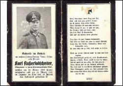 Gefallener 2. Weltkrieg; im Alter von 29 Jahren den Heldentod gestorben; Oberpionier in einem Eisenbahn-Pionier-Batl.; Gatte, Vater, Sohn und Bruder; |