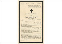 ∞ am 08.07.1910 mit Wilhelm Krapol † 17.04.1918; Sohn Johann † 22.09.1950; |