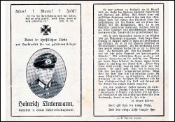 Gefallener 2. Weltkrieg; Eltern Friedrich Lintermann und Barbara geb. Köllen; Gefreiter in einem Inf.-Regt.; |