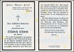 Eltern Christian Schmitz und Elisabeth geb. Esser; ∞ am 07.01.1921 mit Jakob Schmitz aus Frechen; 1 Tochter; |