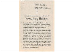 ∞ am 04.11.1905 mit Franz Hülshorst † 19.10.1947; 5 Kinder; |