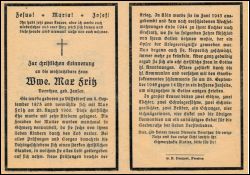 ∞ am 28.08.1900 mit Max Fritz, 10 Kinder, davon 6 Kinder verloren; wurde 1943 in Köln ausgebombt und kam Ende 1944 zur Tochter nach Grefrath; |