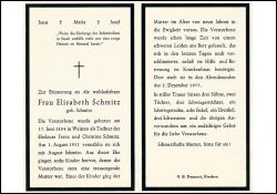 Eltern Franz und Christine Schmitz, ∞ am 01.08.1911 mit August Schmitz; 6 Kinder, davon 1 Kind im Alter von 9 Jahren gestorben; |