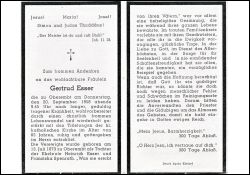 wohlachtbare Fräulein; Eltern Heinrich Esser und Franziska geb. Spenrath; |