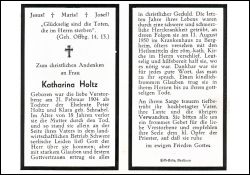 Eltern Peter Holtz und Klara geb. Schnabel; Mutter mit 18 J. durch Tod verloren; die letzten Jahre getrübt durch schwere Herzkrankheit; |