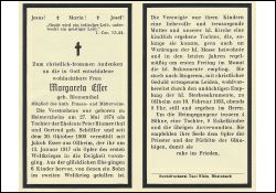 Eltern Peter Blumenthal und Gertrud Schüller, ∞ am 30.10.1900 mit Jakob Esser aus Ollheim - 13.01.1917 †, im 1. Weltkrieg gefallen; 6 Kinder, davon 1 Sohn im 2. Weltkrieg gefallen; |