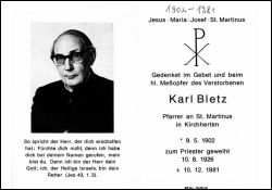 Priesterweihe 10.8.1926; Pfarrer an St. Martinus in Kirchherten