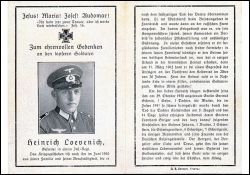 Gefallener 2. Weltkrieg; Gefreiter in einem Inf.-Regt.; an der Nordfront gefallen; pp am 29.10.1938 mit Gertrud Schmitz, 1 Sohn, 1 Tochter; |