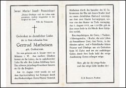 ∞ am 10.08.1909 mit Josef Matheisen; 2 Kinder |