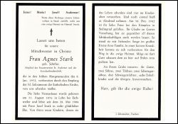 Gefallener 2. Weltkrieg; ∞ am 28.05.1904 mit Peter Josef Stark, 9 Kinder, davon 4 im Kindesalter gestorben; Sohn Peter am 30.12.1942 bei den Kämpfen in Stalingrad gefallen; |