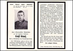 Gefallener 2. Weltkrieg; ∞ am 07.06.1936 mit Christine Prehl, 1 Tochter Marlies; im 2. Weltkrieg durch Kopfschuß den Heldentod gestorben. |