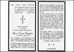 ∞ 25.9.1924 Franz Gerards, † 20.6.1950; das Geschäft ihres Mannes führte sie nach dessen Tod mit Hilfe ihres Neffen weiter. |