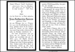 ∞ 16.5.1905 Anton Harren; 7 K.; 4 Töchter früh †; 1 Sohn im 2. Weltkrieg gefallen, der 2. ist vermißt |