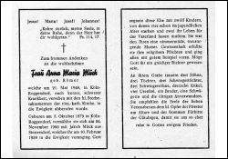 ∞ 24.11.1900 Jakob Mück ais Sinnersdorf, † 10.2.1939; 12 K., davon 4 früh †, 2 Söhne im 2. Weltkrieg gefallen |