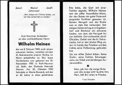Eltern: Ehel. Heinrich Heinen; ∞ 25.10.1923 Maria Dominik, 45 J. Ehe; 1 Tochter; einige J. schweres Leiden (gedruckt in Oberaußem) |
