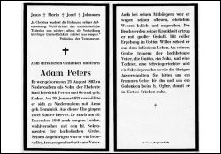 Eltern: Karl Friedrich Peters u. Gertrud geb. Escher; ∞ 20.1.1921 zu Niederaußem Anna Dominick; 2 K.; langes Leiden |