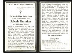 ∞ 3.11.1896 Joseph Hermkes; 1 J. schmerzhaftes Leiden; 3 überlebende Kinder |