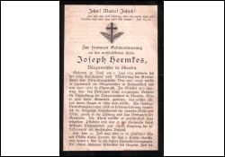 1866-69 Bürgermeister in Hochneukirch, 1869-1872 in Otzenrath, seit Okt. 1872 in Straelen; ∞ 26.7.1866 Adilia Lucia Cremer; 9 K., davon 4 †; schweres Leberübel; ältester Sohn Missionar in Südamerika |