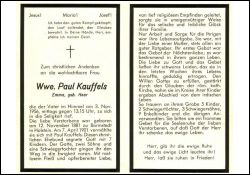 ∞ 7.4.1901 Paul Kauffels, † ; 7 K., davon 2 Söhne †; schweres Leiden |