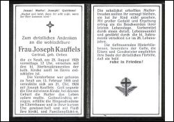 ∞ 21.10.1924 Joseph Kauffels; 1 K., bei dessen sie starb; sie hat ihr Kind nicht gesehen |